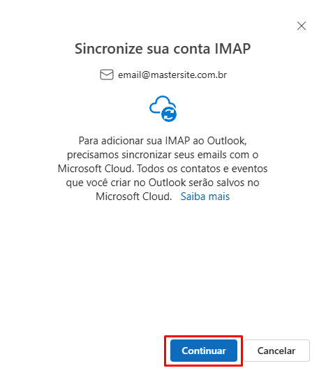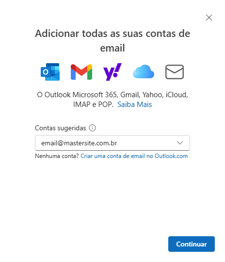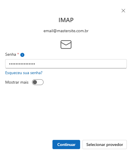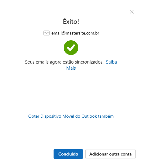 - Senha: ao alterar a senha no painel da MasterSite, será necessário atualizar também no Outlook.