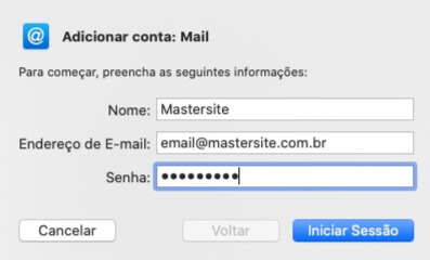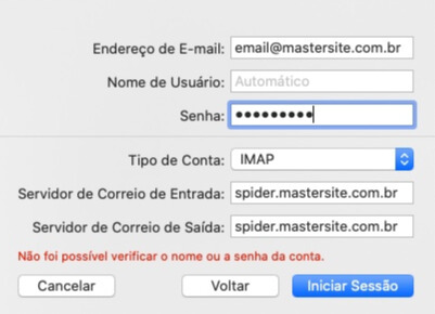 - Senha correta: se alterar a senha no painel da MasterSite, será necessário atualizar também no Mail do Mac.