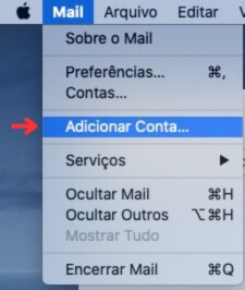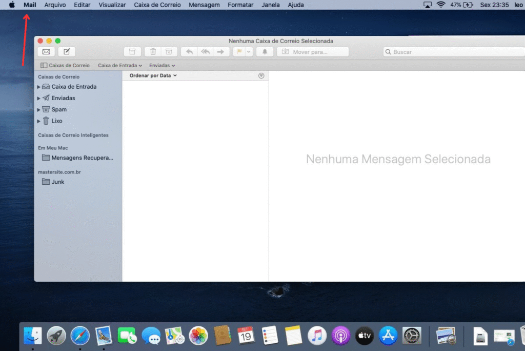 No seu MacBook, abra o aplicativo Mail. No menu superior esquerdo, clique em Mail.
